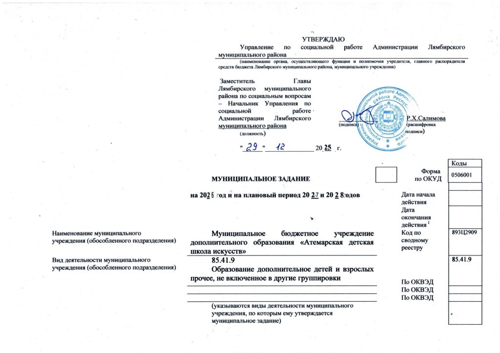Муниципальное бюджетное учреждение дополнительного образования «Атемарская детская школа искусств»